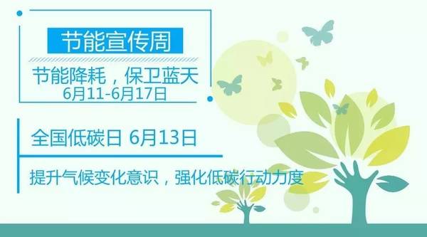 6月11日-17日,是全國(guó)節(jié)能宣傳周,此次節(jié)能宣傳周活動(dòng)主題為“節(jié)能降耗、保衛(wèi)藍(lán)天”。6月13日,低碳日活動(dòng)主題為“提升氣候變化意識(shí),強(qiáng)化低碳行動(dòng)力度”。