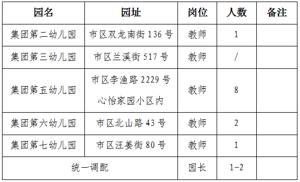 金華市教育投資發展有限公司是金華市人民政府直屬的國有獨資企業,主要經營教育產業。旗下金華市實驗幼兒園教育集團現有5所幼兒園,均屬民辦事業單位,有一定比例的教師可以享受事業編制待遇。現將2018年度幼兒教師招聘事宜公告如下: