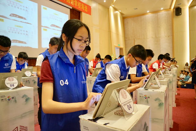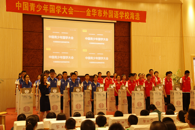 近日,“中國青少年國學大會”金華市外國語學校海選在金外初中部舉行。“中國青少年國學大會”是一個首次跨越六個年級的國學大賽場,分為海選、復賽以及全國總決賽三大階段。本次比賽采取班班組組對抗制,包含古文、詩詞、國學經典、國藝、民俗、民風等內容,全校共有兩百余名選手參賽,展現國學知識涵養。